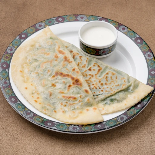 Традиционное лепешка из престного теста с начинкой из зелени и сыра слугуни .